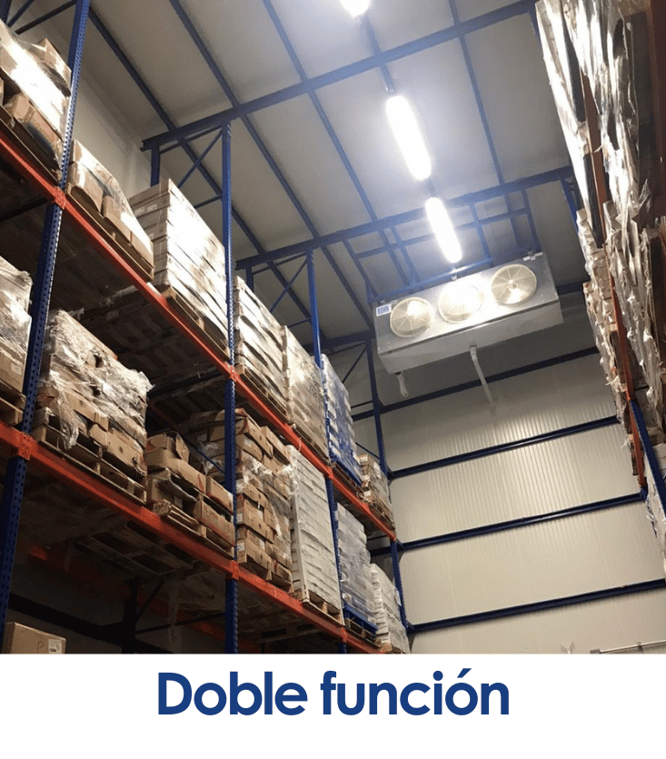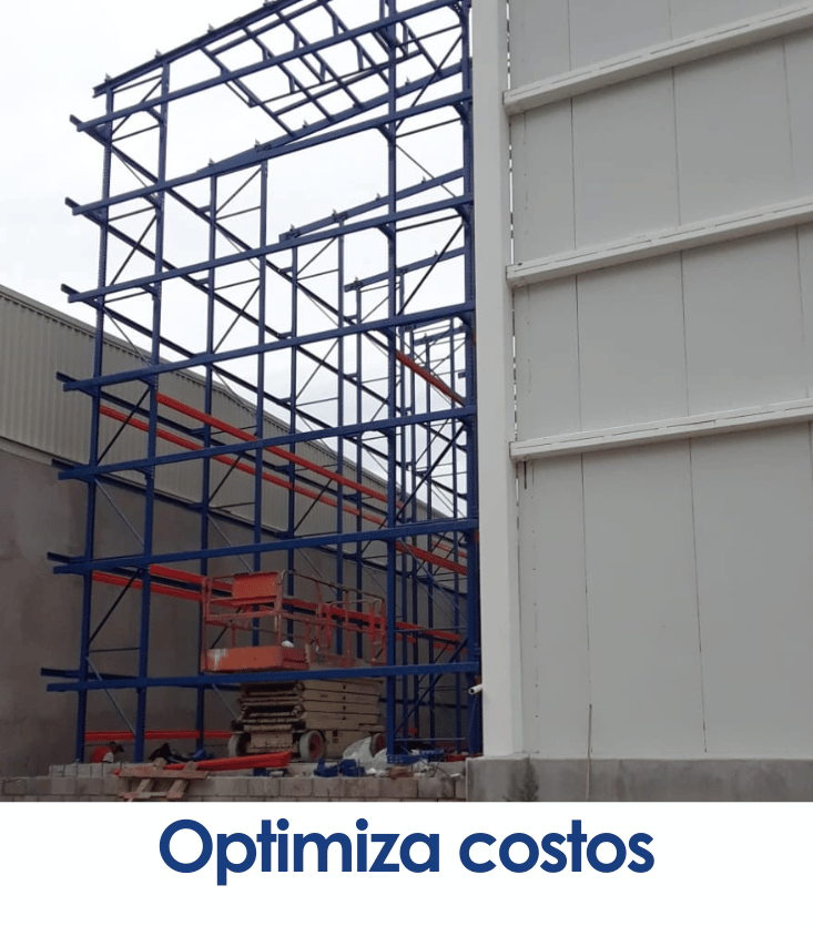 Estructura integral donde los racks sostienen la carga de los productos almacenados y la carga estructural del edificio, reduciendo costos y materiales. Ideal para almacenes de productos no perecederos que buscan maximizar inversión.