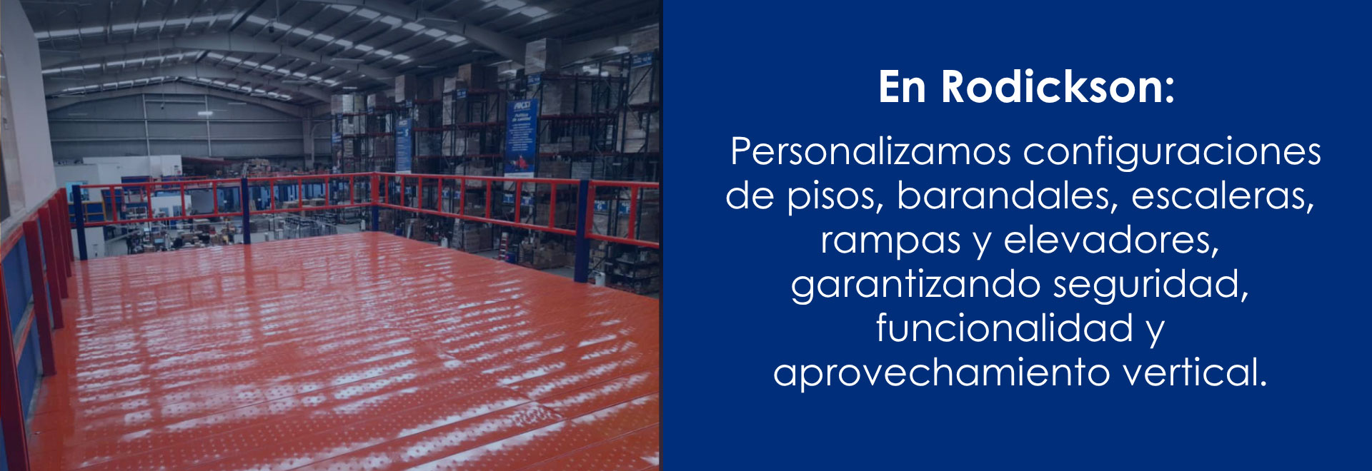 En Rodickson, además de aprovechar tu espacio verticalmente, personalizamos configuraciones de pisos, barandales, escaleras, rampas y elevadores, garantizando soluciones seguras y funcionales.